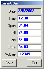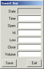 Select the desired date. Type in the time, open, high, low, close, and volume. The time box is used for intraday bars. Leave this box empty for daily, weekly, etc. bars.